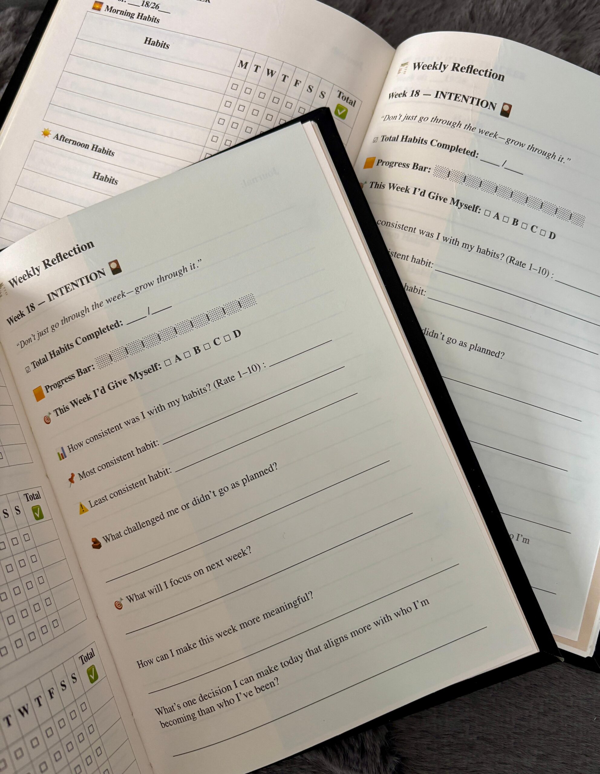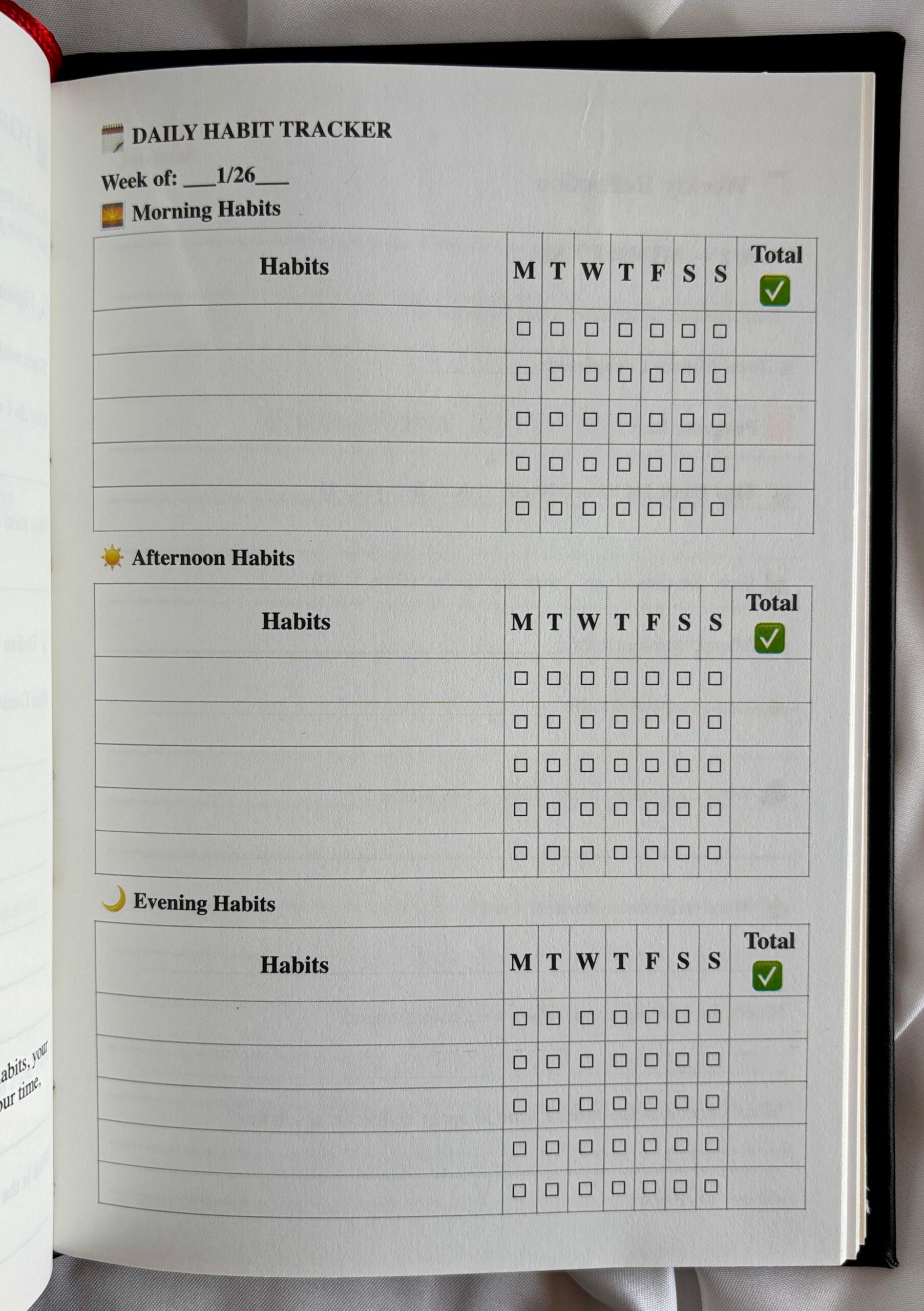 Habit Tracking Grid – Simple morning–afternoon–evening layout to stay on track all day.