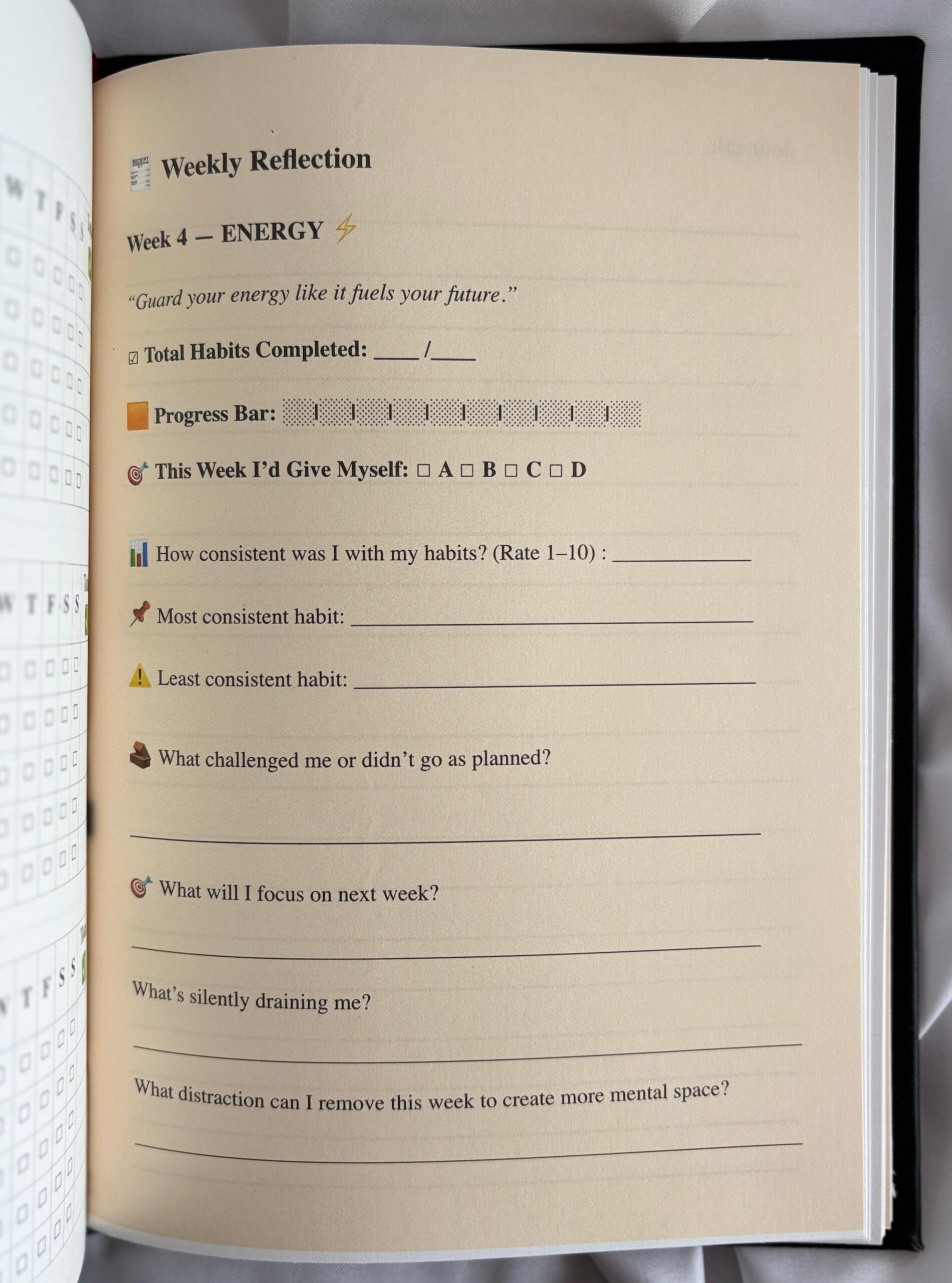 Weekly Reflection Themes – Gamified progress tracking with fresh mindset coaching every week.