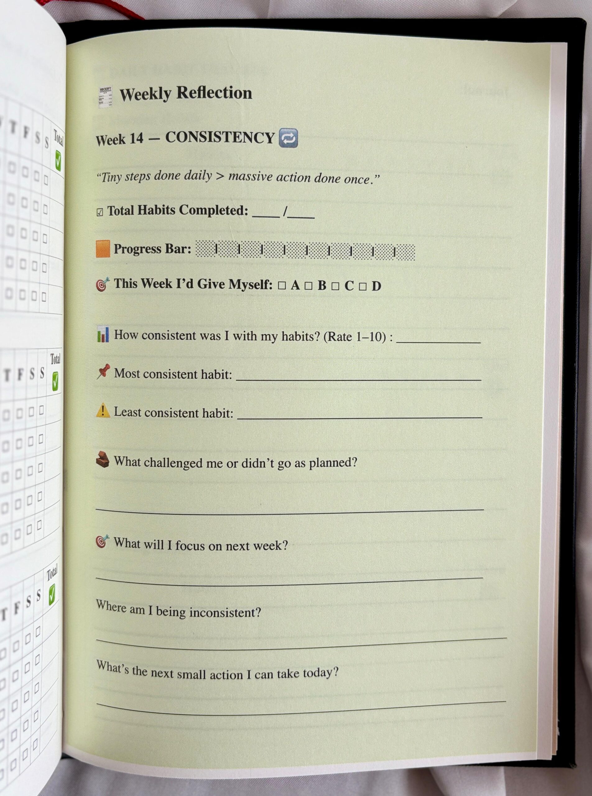 6-Month Duration – 182 days of structured weekly pages; start on any Monday to build consistency.